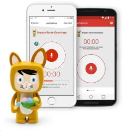 Mit der dazugehörigen, kostenlosen Smartphone-App können eigene Sprachaufnahmen aufgezeichnet und dem Kreativ-Tonie zugewiesen werden